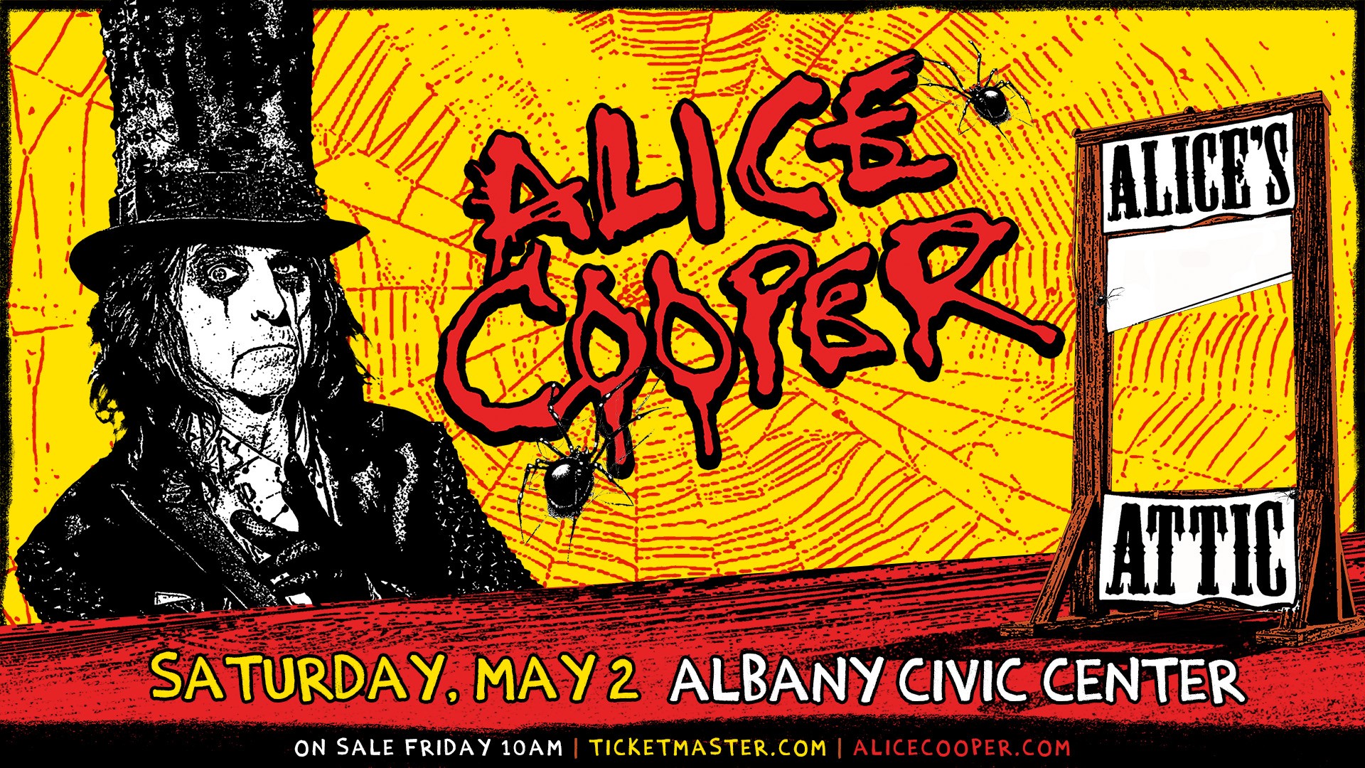 < Back Alice Cooper Live Alice Cooper Live100 W Oglethorpe Blvd Albany, Georgia United StatesDetailsOpen in Google Maps Map 100 W Oglethorpe Blvd, Albany, GA (229) 430-5200 Overview The Godfather of Shock Rock is coming to Albany! Don’t miss Alice Cooper live at the Albany Civic Center on May 2! May 2 7:30 PM Save Buy Tickets Email