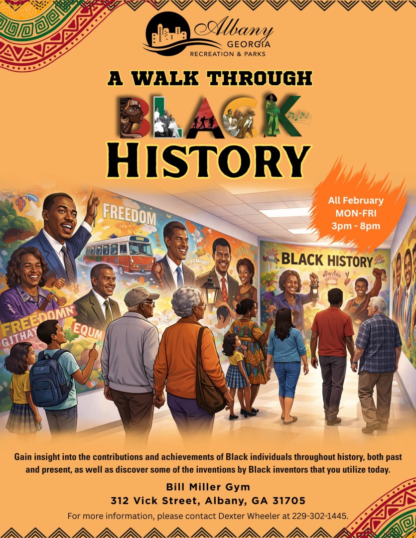 The Albany, Georgia Recreation & Parks Department invites you and your family to experience A Walk Through Black History, an immersive journey celebrating the contributions, achievements, and lasting impact of Black individuals past and present.
