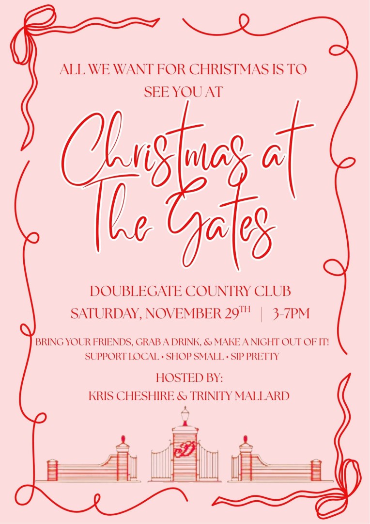 Two business owners, coming together with a shared passion for community and creativity, are so excited to bring you Christmas at the Gates - hosted at the beautiful Double Gate Country Club! We’ve teamed up to create a festive, bougee holiday event you won’t want to miss. We’re bringing together an incredible lineup of small businesses to help you shop, sip, and celebrate the season in style. Stay tuned for all the vendor highlights. We can’t wait to see you there!
