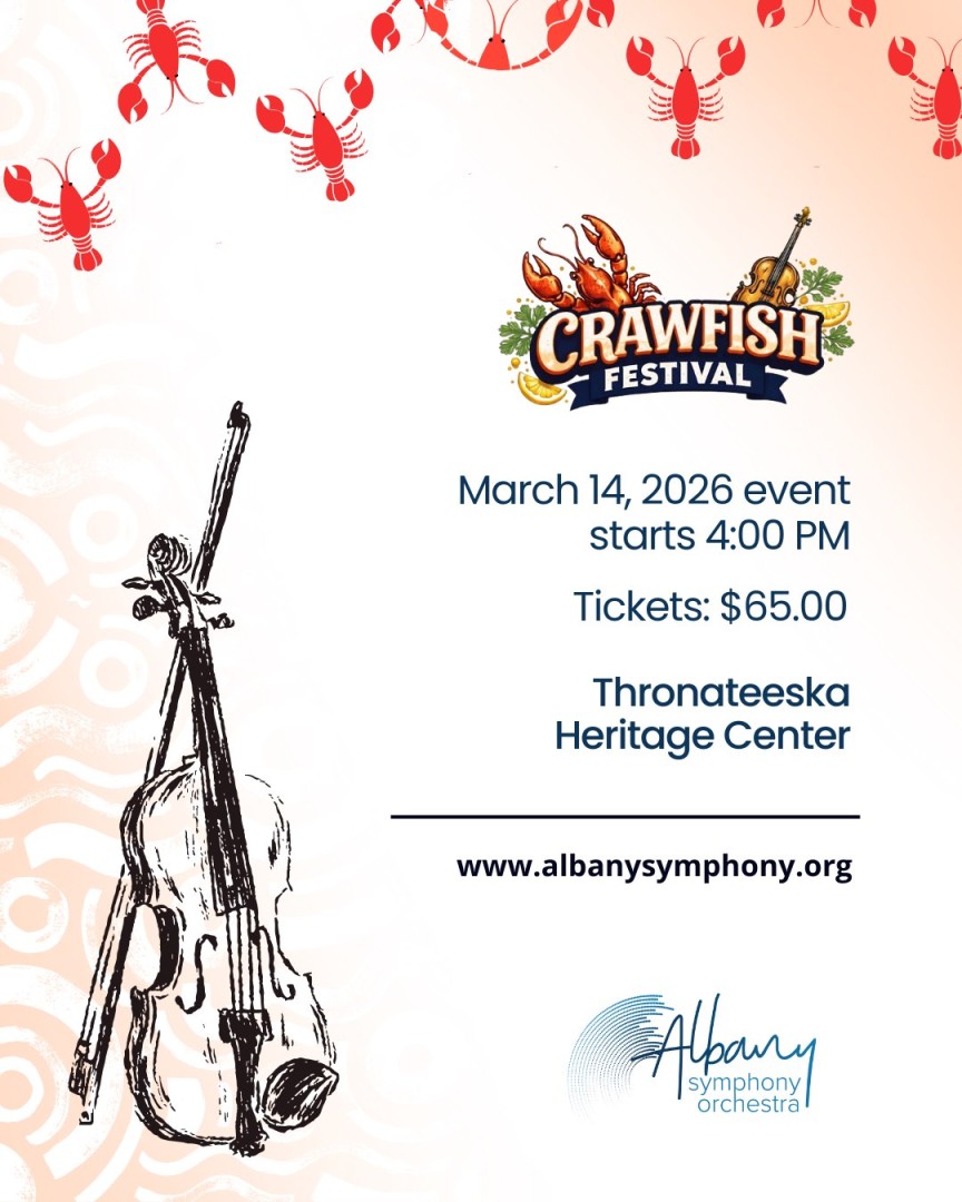 < Back Crawfish Festival Crawfish FestivalP.O. BOX 70065 Albany, Georgia United StatesDetailsOpen in Google Maps Map Thronateeska Heritage Center P.O. BOX 70065, Albany, GA (229) 430-8933 Overview “A Taste of Albany Tradition.”The Crawfish Festival brings together community, cuisine, and music in one unforgettable event.Join us Saturday, March 14 at 4:00 PM. Thronateeska Heritage Center Tickets: $65Supporting music education through the Albany Symphony Orchestra. Mar 14 4:00 PM Save Related Partner Albany Symphony Orchestra Albany Symphony OrchestraP.O. BOX 70065 Albany, Georgia 31708 United StatesDetailsOpen in Google Maps Map P.O. BOX 70065, Albany, GA 31708 (229) 430-8933 Learn More Website
