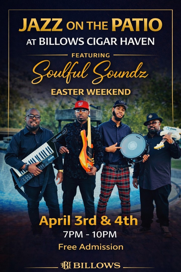 Join us for an unforgettable evening featuring the smooth, captivating sounds of Soulful Soundz—set against the perfect backdrop of premium cigars, great company, and elevated ambiance.