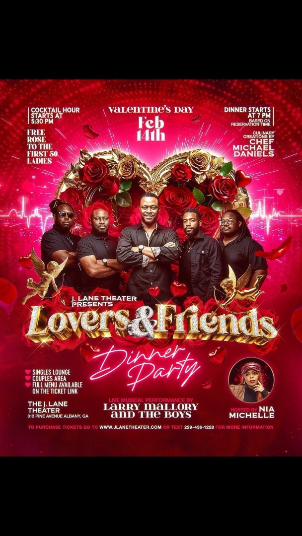 Skip the line this Valentine’s Day! Dining time is based on your reservation time. This will be an unforgettable evening filled with love, live music, and grear vibes. Whether you're coupled up or flying solo, this in-person dinner party is the perfect way to celebrate Valentine's Day with your favorite people. Delicious food curated by Chef Michael Daniels. Live performance by Larry Mallory and the Boys. Hosted by Nia Michelle. Don't miss out on a night to remember!