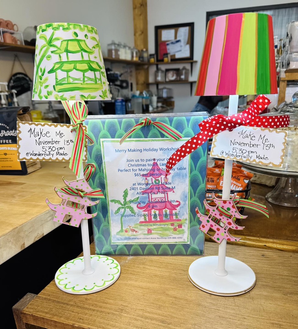 Home Merry Making Holiday Workshop Merry Making Holiday Workshop2401 Dawson Rd Georgia United StatesDetailsOpen in Google Maps Map Wonderfully Made 2401 Dawson Rd, , GA (229) 886-4392 Overview Add a little merry to your holiday season! Paint your own Christmas touch lamp at our Merry Making Workshop with sips, snacks & fun included! Join us on Nov. 13 at 6 PM! RSVP to Anne Northrop at 229-886-4392 Nov 13 6:00 PM Save Email Related Partner Wonderfully Made Wonderfully Made2401 Dawson Rd 31707 Albany, Georgia 31707 United StatesDetailsOpen in Google Maps Map 2401 Dawson Rd 31707, Albany, GA 31707 (229) 603-1722 Learn More Website