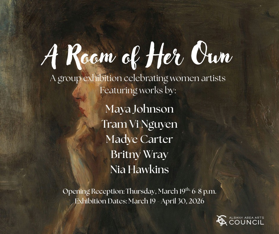 A Room of Her Own is a group exhibition staged annually at the Albany Area Arts Council allowing selected female artists to curate and show their work through the duration of Women's History Month.