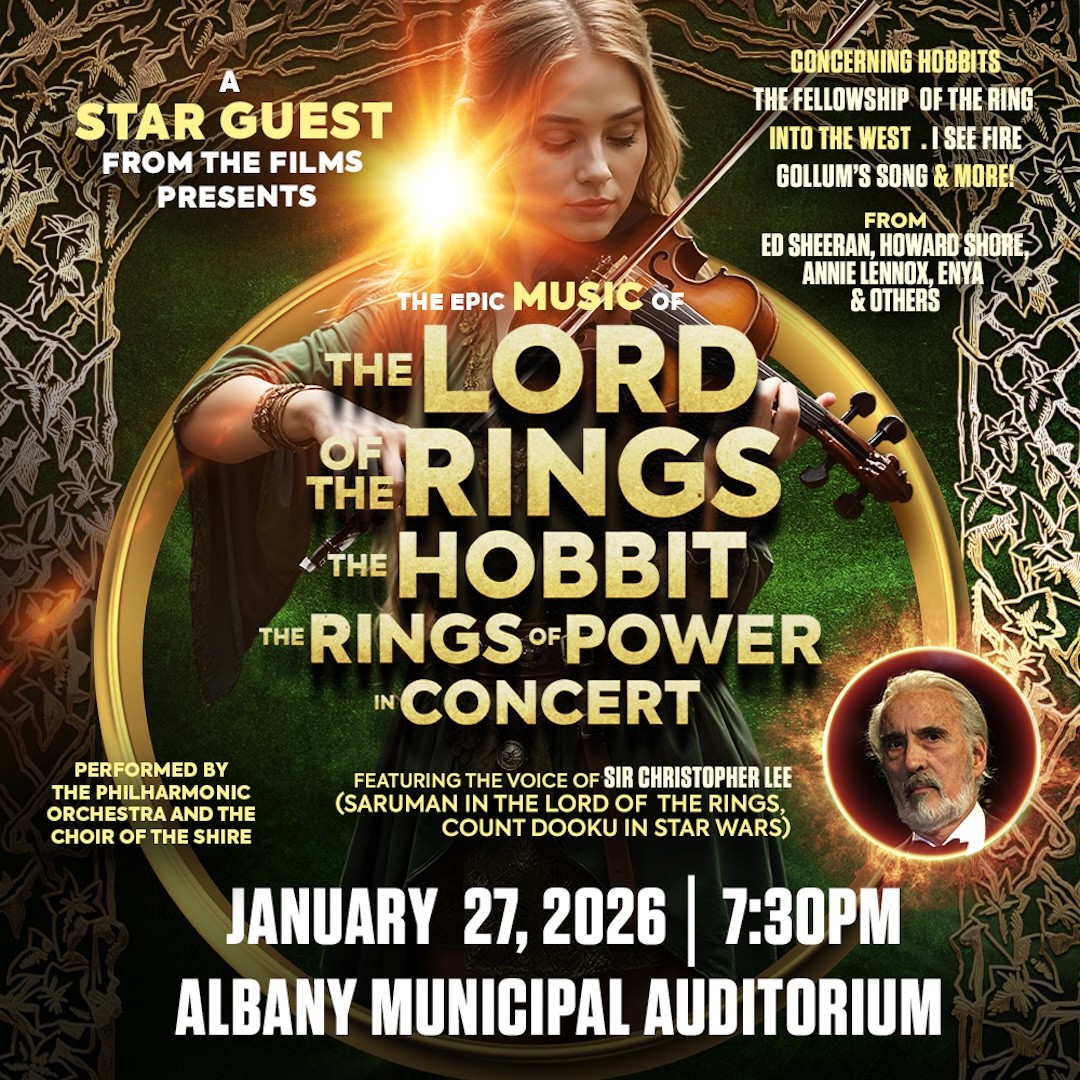 Home The Music of The Lord of the Rings, The Hobbit & The Rings of Power The Music of The Lord of the Rings, The Hobbit & The Rings of Power200 N Jackson Street Georgia United StatesDetailsOpen in Google Maps Map Albany Municipal Auditorium 200 N Jackson Street, , GA (229) 430-5200 Overview From the Shire to Mordor, journey through the music that shaped Middle earth. The Music of The Lord of the Rings, The Hobbit & The Rings of Power – In Concert is coming to Albany on January 27! Jan 27 7:30 PM Save Buy Tickets Email