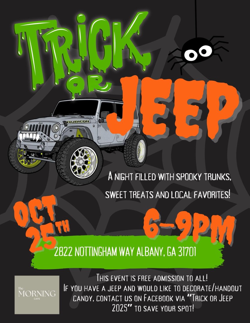 Located in the parking lot of Morning Cafe in Albany, Ga on Saturday, October 25th from 6-9pm!